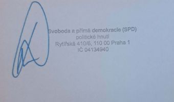Název politické strany / politického hnutí: Svoboda a přímá demokracie (SPD) Identifikační číslo politické strany / politického hnutí: 04134940 Sídlo politické strany / politického hnutí: Rytířská 410/6, Praha, 11000 Telefon, fax, elektronická pošta (např. e-mail): tel.: 257173650, e-mail: info@spd.cz Politická strana / politické hnutí je v režimu: normální činnosti |